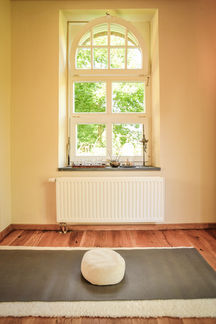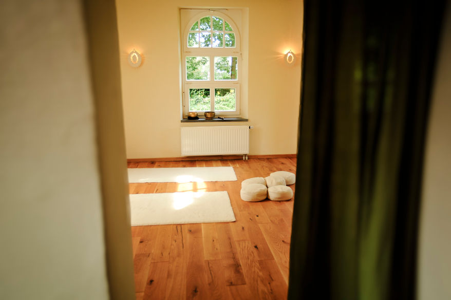 Mein Yogastudio befindet sich in der ruhigen, kleinen Ortschaft Am Meinweg, Gemeinde Niederkrüchten / Herkenbosch NL. In einem schönen, historischen Raum mit Blick in die Garten- und Wiesenlandschaft gebe ich Yogakurse in kleinen Gruppen bis zu 7 Personen, so dass ich auf jeden Teilnehmer eingehen kann. Yoga bietet die Möglichkeit unseren Körper und auch unseren Geist neu zu entdecken. Wir bauen Kraft auf, dehnen uns auf behutsame Weise, lenken die Aufmerksamkeit auf eine bewusste Atmung, lernen tief zu entspannen und stabilisieren die Motorik durch Gleichgewichtsübungen. Und wie nebenbei lassen wir uns überraschen von den Schätzen, die Yoga uns schenken kann.